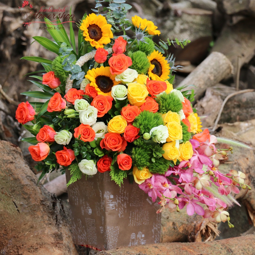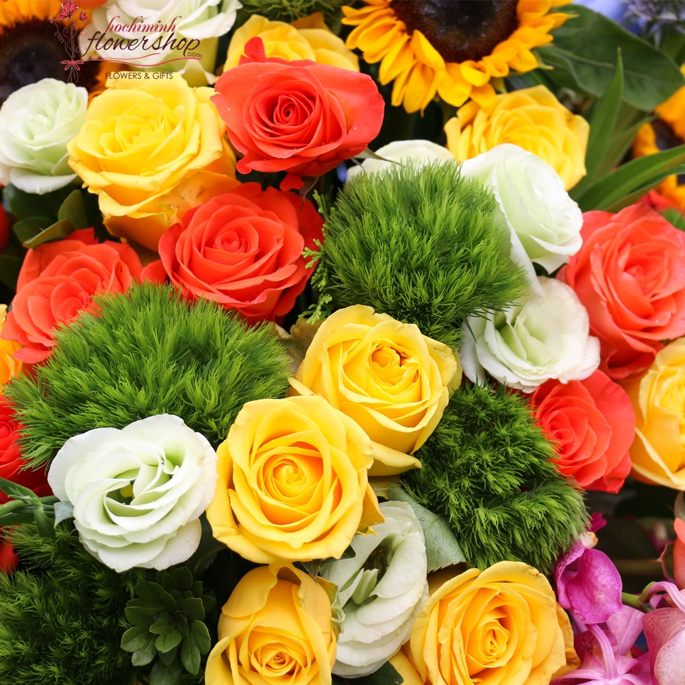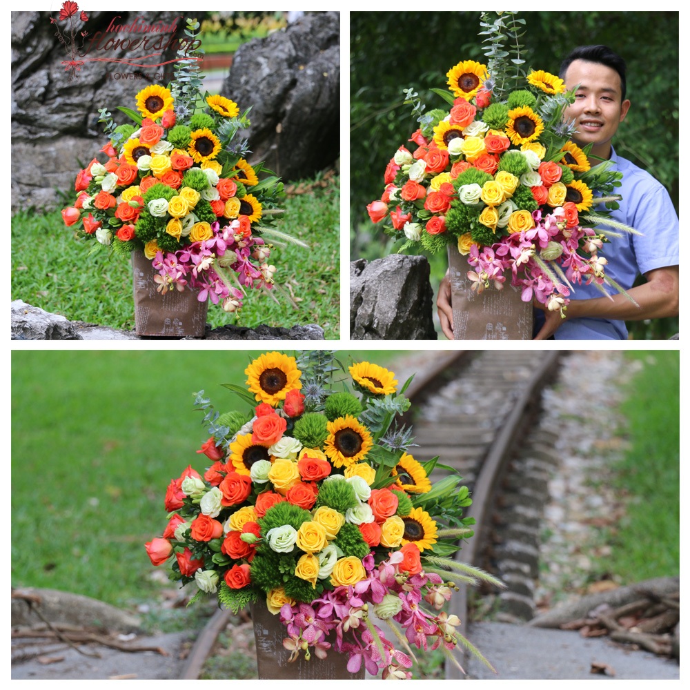 | Kind of flowers | Roses, Mokara orchids, Green wicky, Sunflower, Lisianthus |