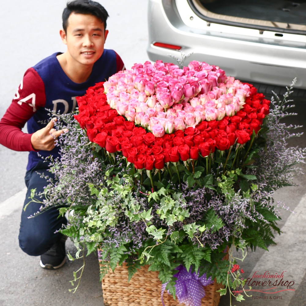 Big heart by roses in Hochiminh Flower Shop
