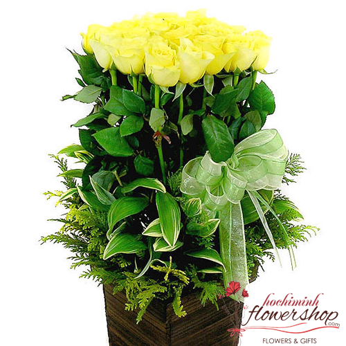 We put together yellow roses to make up the romantic arrangement. This jovial dance of flowers creates a magnificent mood in the home or office space, a symphony of happy tones and features. This arrangement sings with joy, and trongly resonates with all our senses. We look at these premium, sunny yellow roses and immediately smile – feeling gratified, positive and loved. The bouquet gives of an infectious joy, sure to strike even on the gloomiest day.
