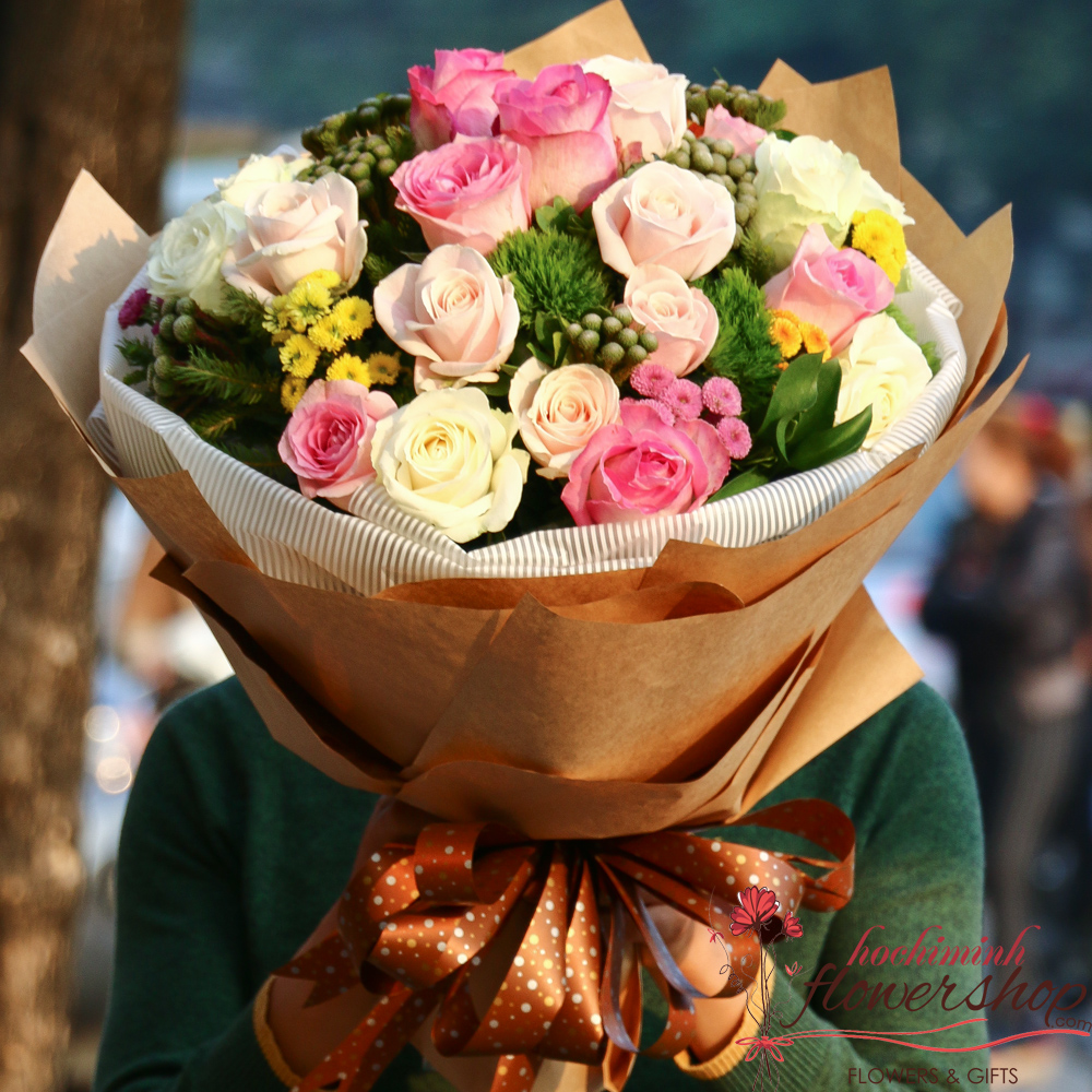 delivery mixed rose bouquet for birthday in hochiminh