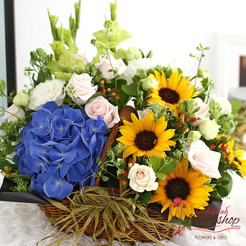 | Kind of flowers | Pink roses, sunflowers, hydrangea |